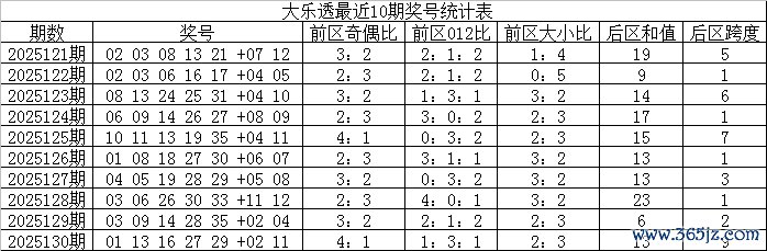 概述分析,大乐透第25131期前区012路比参考1:2:2。